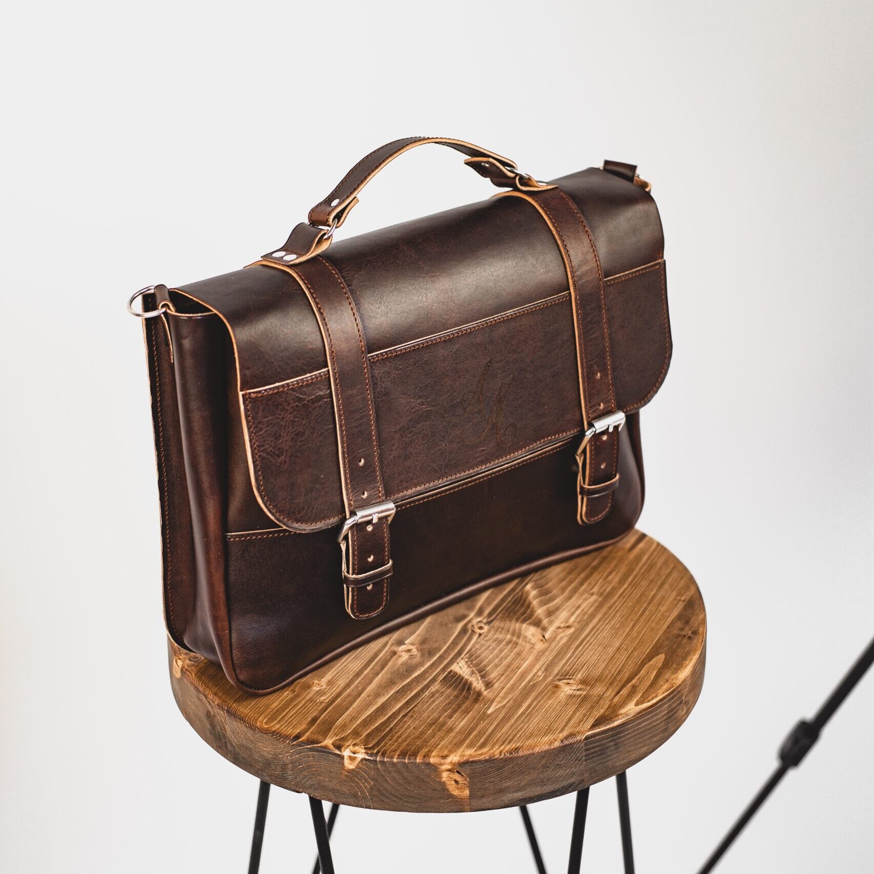 アンティーク調オイルレザーサッチェルバッグ